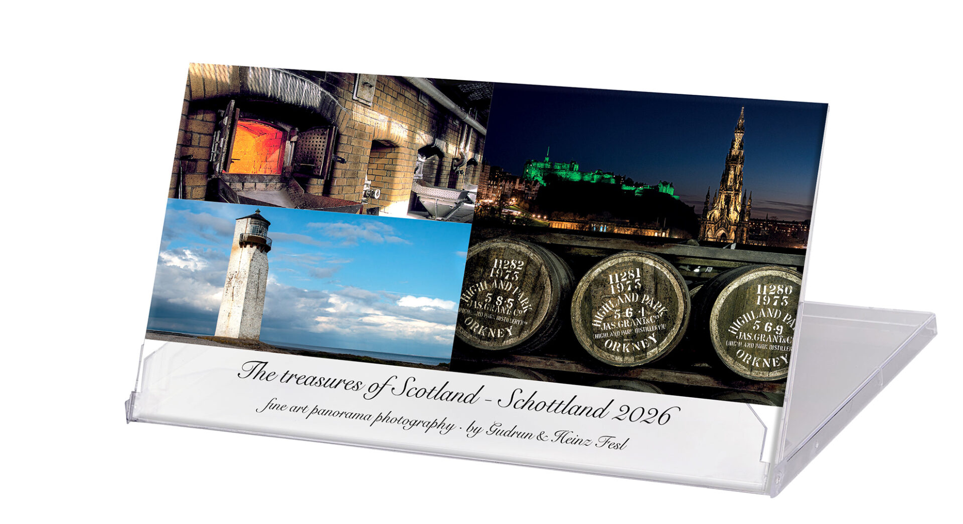 Der mittlerweile bereits 23. Schottland-Panoramakalender von Gudrun und Heinz Fesl ist jetzt erhältlich. Und auch für das Jahr 2026 gibt es diesen als Wand- und auch als Tischversion.