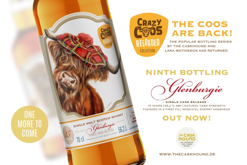 Der Whisky-Tag bei uns auf Whiskyexperts beginnt heute mit einer neuen Abfüllung von The Caskhound in der Serie Crazy Coos Reloaded: Ein 15 Jahre alter Glenburgie mit einem 15 Monate langen Finish in einem First Fill Moscatel Sherry Hogshead ist ab sofort erhältlich (Bezugsquellen im Artikel) – in Fassstärke und natürlich ohne Kühlfiltration oder Farbstoffe.