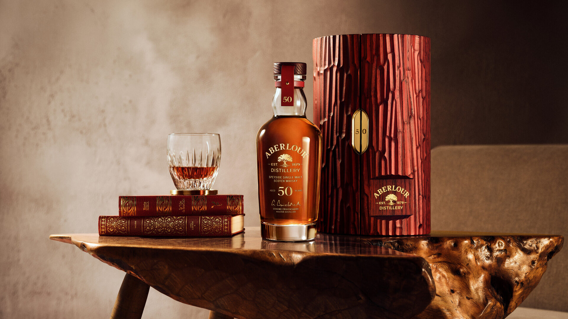The landmark, limited edition, 50 Year Old stands as a distinguished testament to five decades of patient maturation and the meticulous cask selection perfected by generations of Aberlour’s makers. It marks a pivotal moment in time, shaped by the careful guardianship of Aberlour’s Master Distiller, Graeme Cruickshank, and his team.