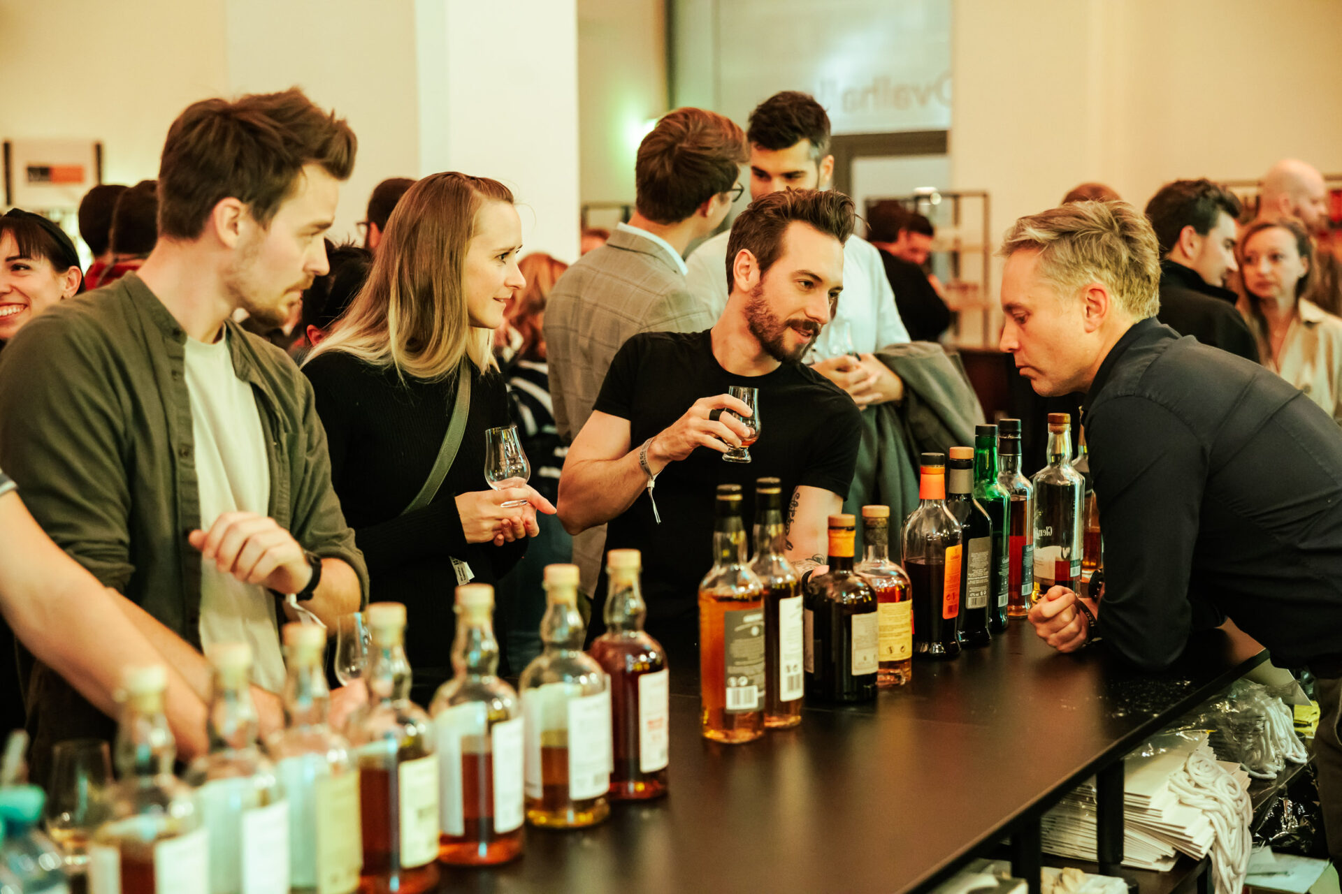 Das Programm von About Spirits ist vielfältig und bietet für jede*n etwas. Besucher* können an Masterclasses teilnehmen, in denen Expertinnen und Experten spannende Einblicke in Herstellung, Geschmack und Trends verschiedener Spirituosen geben. Beim Sprits Memory können Sinne getestet werden, während der Label Free Table dazu einlädt, Spirituosen zu erraten und sich ganz auf Aromen und Qualität zu konzentrieren. Zusätzlich bieten geführte Thementouren durch die Festivalbereiche Orientierung, Hintergrundinfos und Empfehlungen, sodass die Gäste neue Favoriten entdecken und das Festival optimal erleben können.