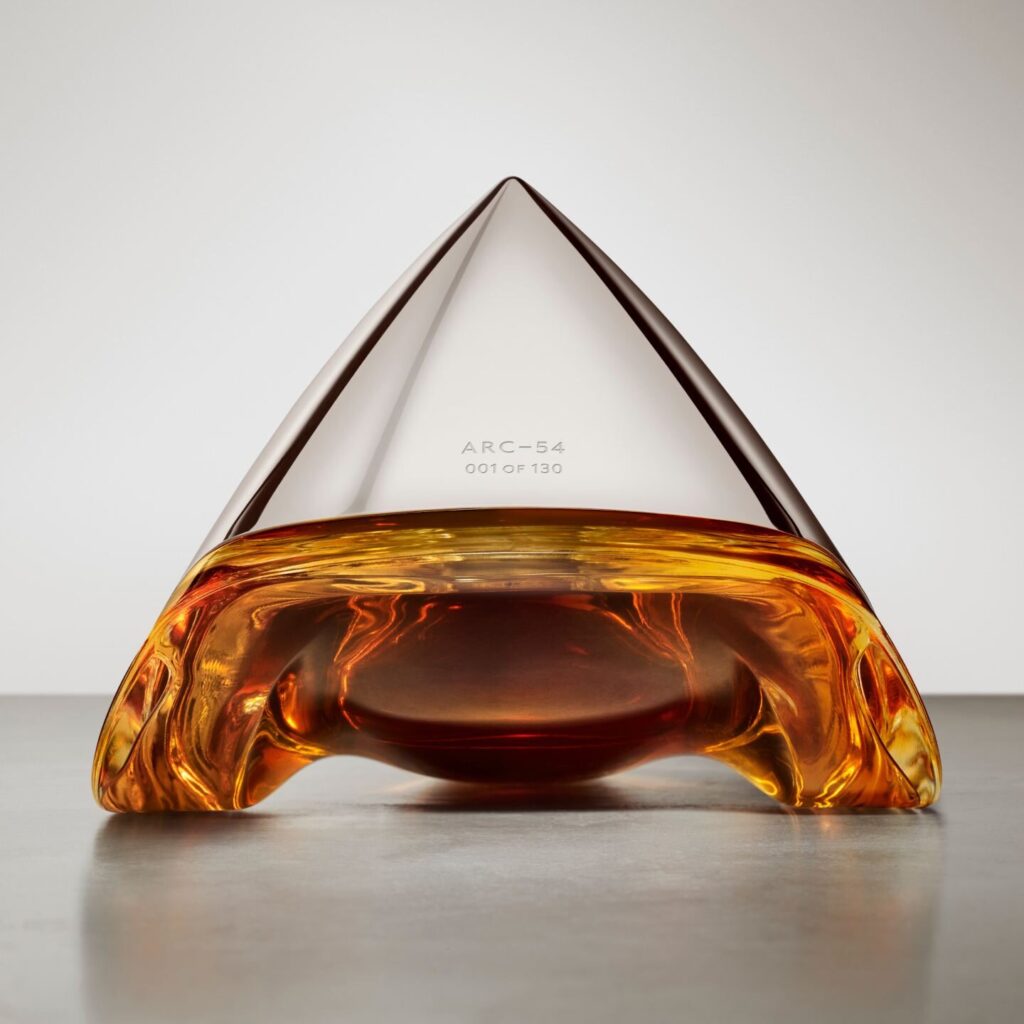 Frankfurt am Main, 30. April 2025 – Bowmore und Aston Martin präsentieren mit dem ARC-54 die finale Veröffentlichung ihrer revolutionären ARC-Serie. Dieser wird zum Höhepunkt in der Geschichte der Partnerschaft: ein seltener 54 Jahre alter Bowmore-Whisky in einem bemerkenswerten, handgeblasenen Dekanter, inspiriert vom futuristischen Design des Aston Martin Valkyrie Hypercars. Diese auffällige Kreation vereint höchste Handwerkskunst mit visionärem Design und steht sinnbildlich für die gemeinsame Leidenschaft beider Marken für Präzision, Innovation und zeitlose Eleganz.