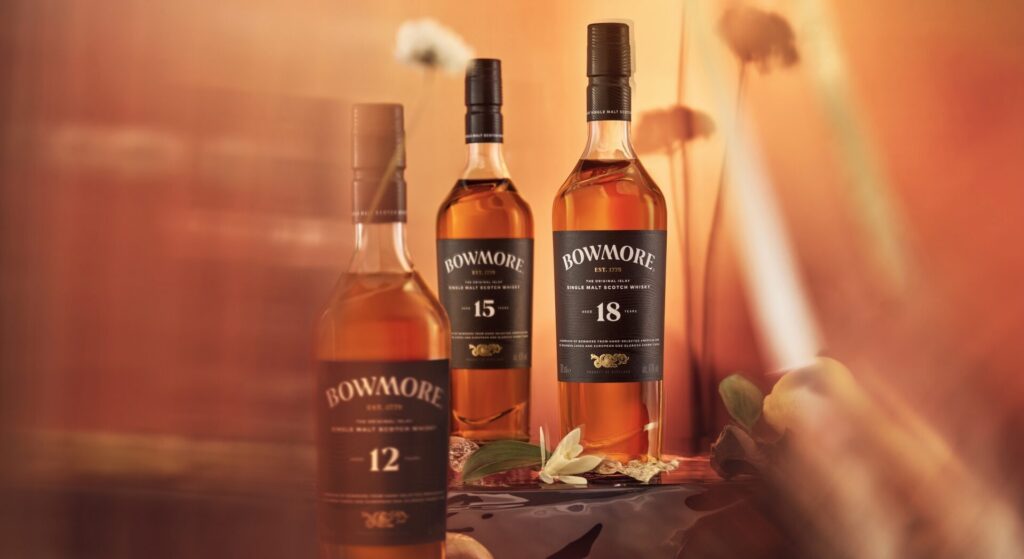 Das neue Design verbindet die über 240-jährige Geschichte von Bowmore mit einem klaren, zeitgemäßen Auftritt. Die Flaschenform orientiert sich an den sanften Wellen des Lochindaal, direkt vor der Destillerie gelegen, und verweist so auf die maritime Herkunft der Marke.