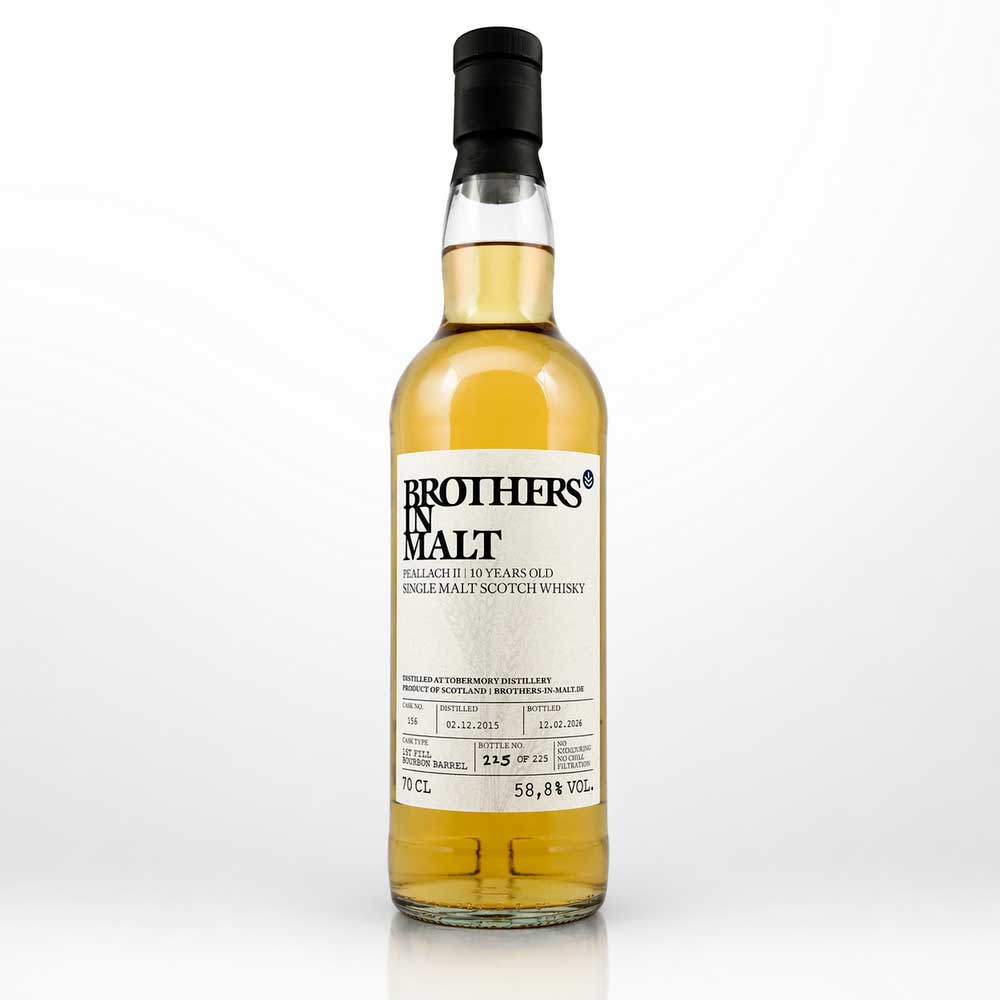 Der in Solingen ansässige unabhängige Abfüller Brothers in Malt hat mit dem PEALLACH II nun das Schwesterfass des vor zwei Jahren so beliebten 8-jährigen Vorgängers abgefüllt. In einem First Fill Bourbon Barrel reifte dieser peated Highland Single Malt (Inseln), destilliert in Tobermory, volle 10 Jahre und gelang mit 58,8% fassstark in die Flasche.