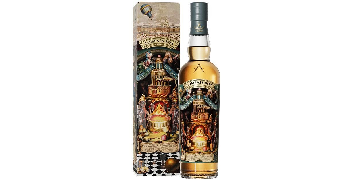 Der Scotch Whisky Maker Compass Box kann in diesem Jahr sein 25-jähriges Firmenjubiläum feiern, und wird dies wie erwartet mit einer neuen Kreation begehen. Compass Box Brûlée Royale ist ein Blended Malt, der vier Single Malts vereint. Den Kern bildet ein sieben Jahre alter Clynelish, der in second-fill American oak barrels reifte. Ergänzt ist dieser durch 17 Jahre alten Benrinnes aus first-fill bourbon barrels, einem 2000er Speyburn aus refill American oak hogsheads, und 21 Jahre alten Ardbeg aus recharred American oak barrels.