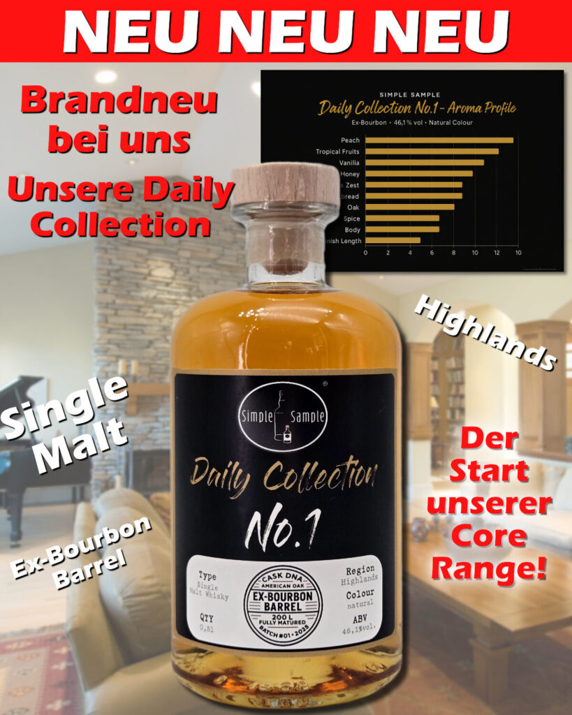 Simple Sample geht unter die unabhängigen Abfüller und beschreitet dabei einen unkonventionellen, interessanten Weg. Die Daily Collection No. 1 ist der Auftakt zu einer permanent verfügbaren Core Range – und man orientiert sich nicht an Destillerien, sondern an einem speziellen Geschmacksprofil pro Bottling. Dabei ist jede Abfüllung ein Single Malt.
