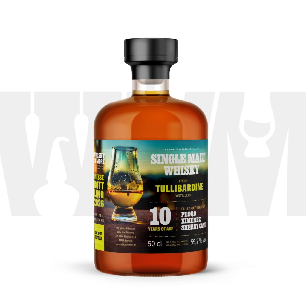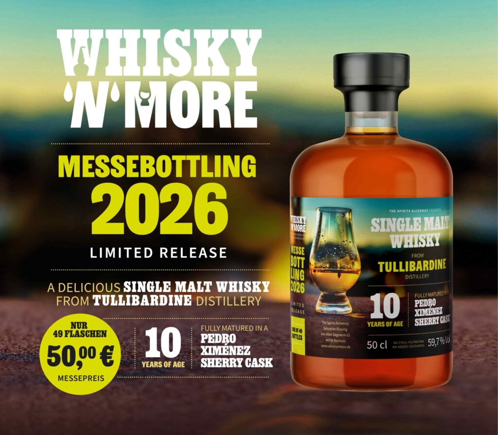 Nicht mehr lange hin ist es bis zur WHISKY ‘N‘ MORE 2026 in Hattingen, und die Vorfreude darauf könnte diese Ankündigung des Messebottlings noch weiter steigern: Extra für die Messe wurde ein 10 Jahre alter Tullibardine in Fassstärke abgefüllt, der seine gesamte Reifezeit in einem PX-Sherryfass verbringen durfte. Dementsprechend lesen sich auch die Tasting Notes, die sich ebenso in der nachfolgenden Presseinfo finden wie auch weitere Infos zur Abfüllung, die mit 50 Euro pro Flasche kein tiefes Loch ins Budget reißen sollte: