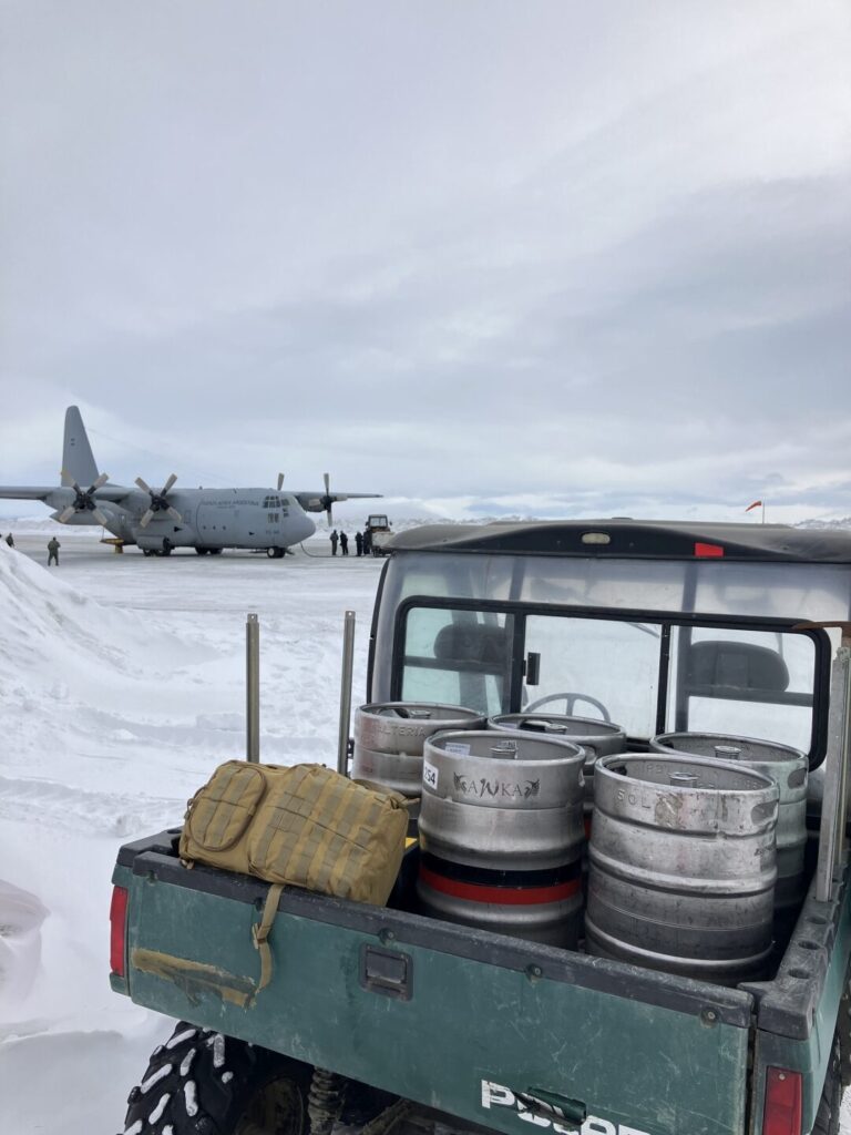 The project was carried out with the support of the Argentine Ministry of Defence and Armed Forces, who facilitated transport of the casks both to and from Antarctica, aboard a Lockheed C-130 Hercules aircraft between Buenos Aires, Río Gallegos, and Base Marambio.