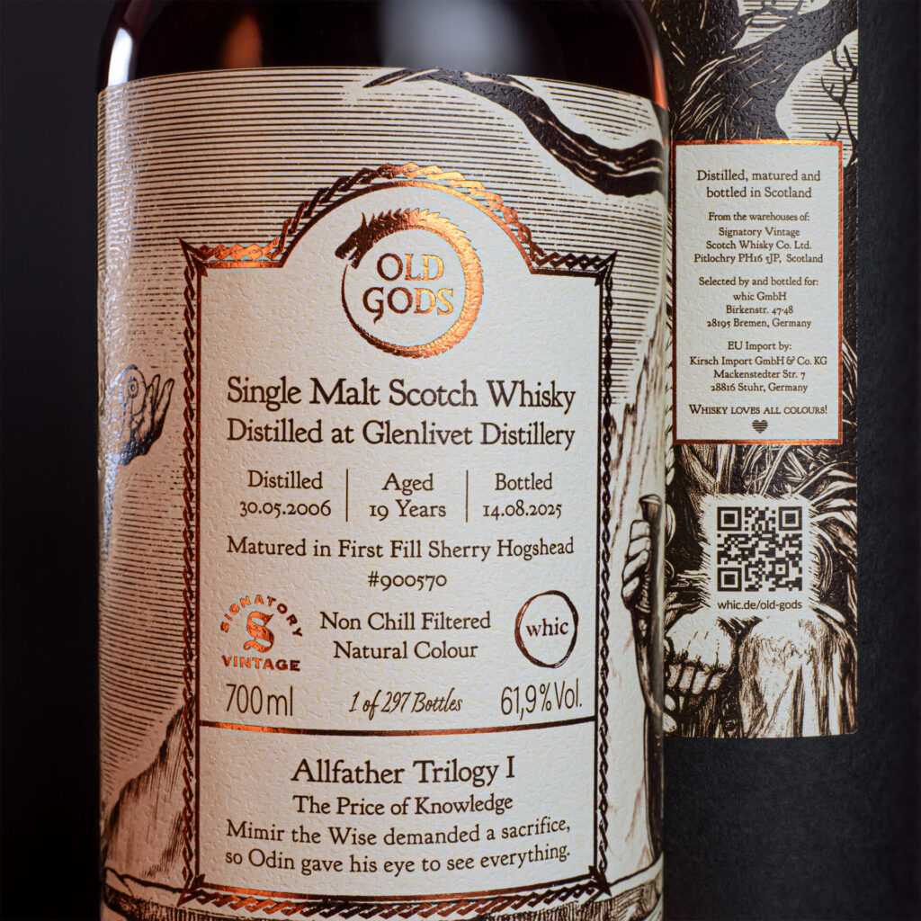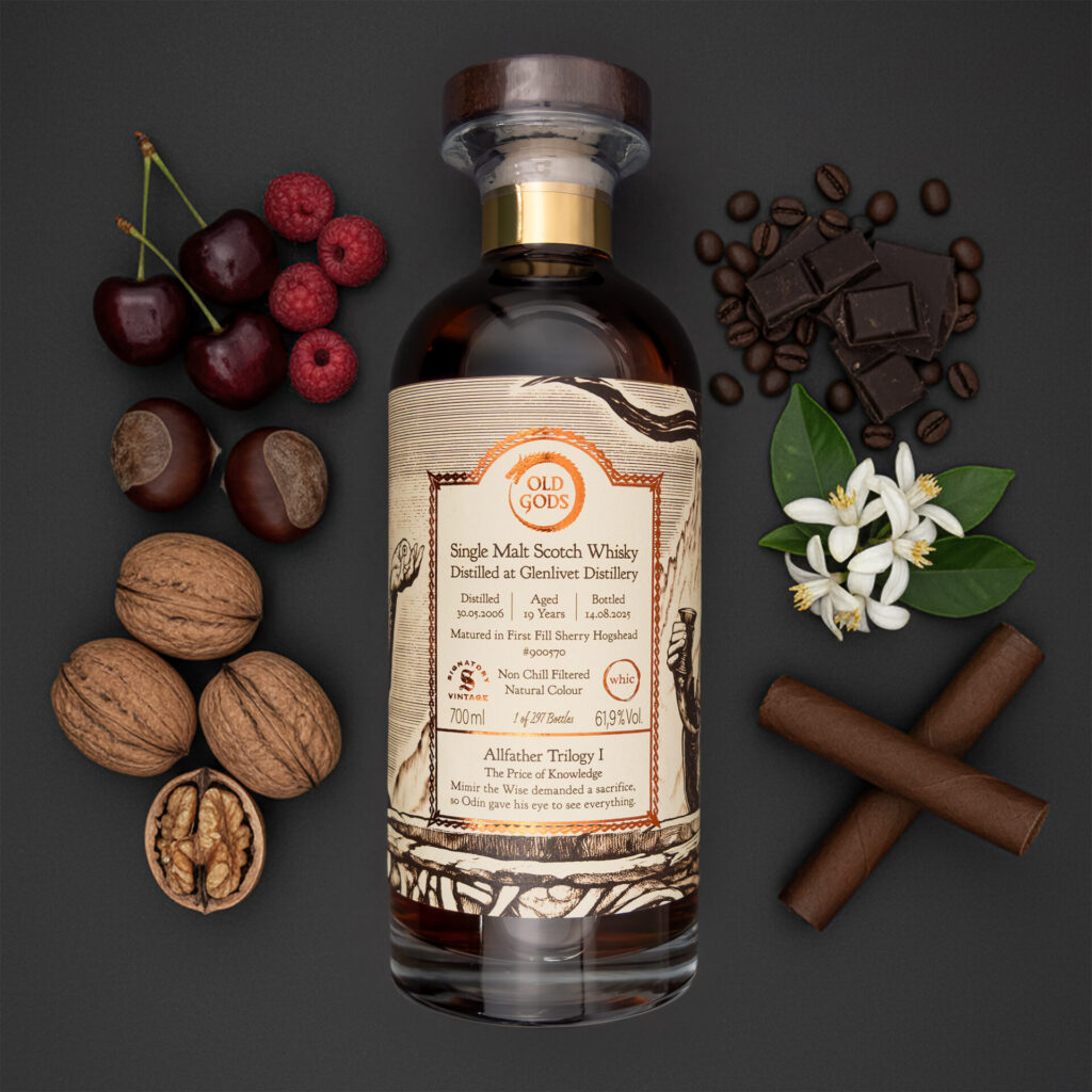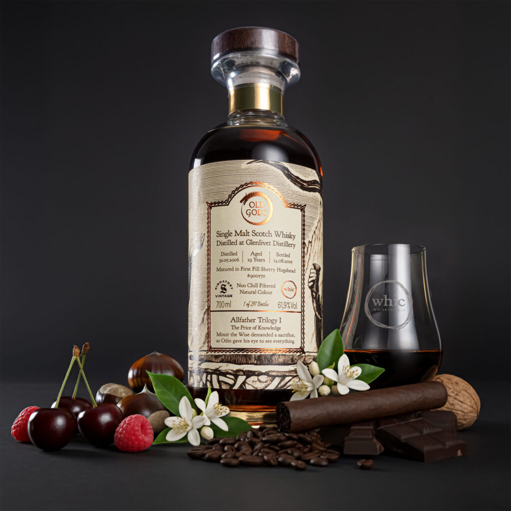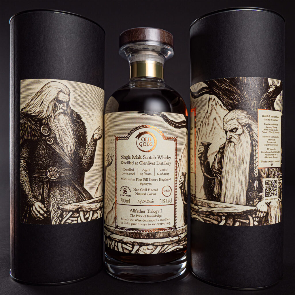 Mit der ersten Abfüllung der Allfather Trilogy startet whic eine umfassende Serie von Whiskys rund um die Geschichten der alten nordischen Götter – und diese erste Abfüllung hat es in sich: Ein 19 Jahre alter Glenlivet, der in einem First Fill Sherry Hogshead reifen durfte. Er stammt aus dem Hause Signatory, wurde mit mächtigen 61,9% vol. Alkoholstärke abgefüllt und ist exklusiv bei whic in einer Auflage von 297 Flaschen erhältlich – ab jetzt.