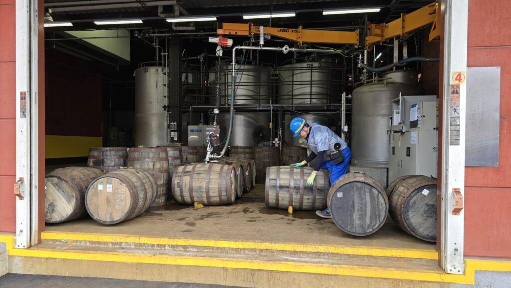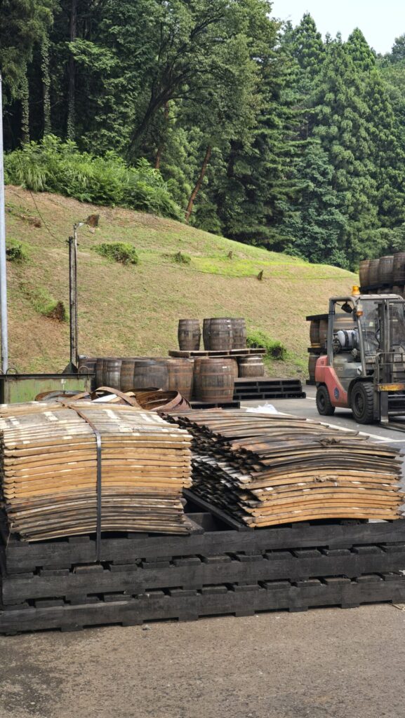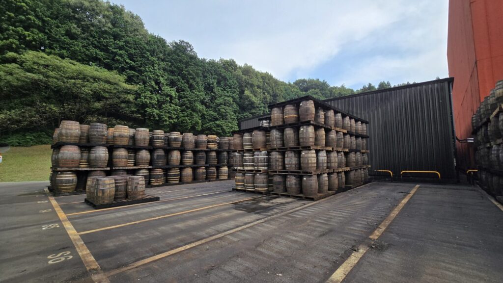 In der Tat verbirgt dort üppige Natur jene Anlage, in der Nikka Whisky die Hälfte der Produktion aus allen Destillerien lagert und blendet. 13 gigantische Lagerhäuser und eine Böttcherei findet man dort nach einigen Minuten Anfahrt an einem künstlichen See und viel Grün vorbei – etwas, was ausländischen Besuchern bislang nicht zugänglich war.