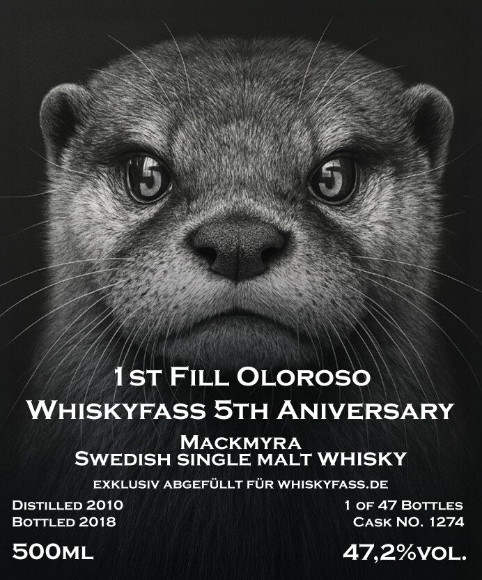 In otter news: Der deutsche Händler und unabhängige Abfüller whiskyfass.de beendet heute um Mitternacht die Feierlichkeiten um seinen 5. Geburtstag (die sich bis dahin auch über zahlreiche Rabatte im Shop – Link siehe unten – erstrecken) mit einer speziellen Mackmyra-Abfüllung: einem 8 Jahre alten Whisky aus der schwedischen Brennerei, der in einem 1st Fill Oloroso Sherry Cask mit 30 Liter Fassungsvermögen reifte und ab sofort erhältlich ist.