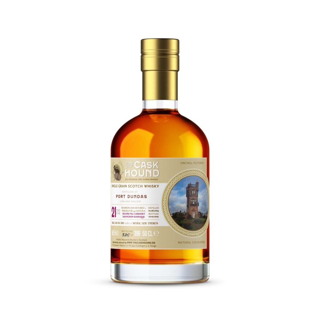 Mit einem Grain Whisky aus der nicht mehr im Betrieb befindlichen Brennerei Port Dundas hat Tilo Schnabel aka The Caskhound eine neue Abfüllung am Start, die noch dazu mit einem besonderen Finish aufwarten kann: 430 Tage lagerte er nach seiner Reifung in Bourbonfässern noch in einem Second Fill Cabernet Sauvignon Barrique. Ab sofort gibt es ihn im ausgesuchten Fachhandel und direkt auf der Webseite von The Caskhound – die Adresse und alles weitere Wissenswerte lesen Sie hier: