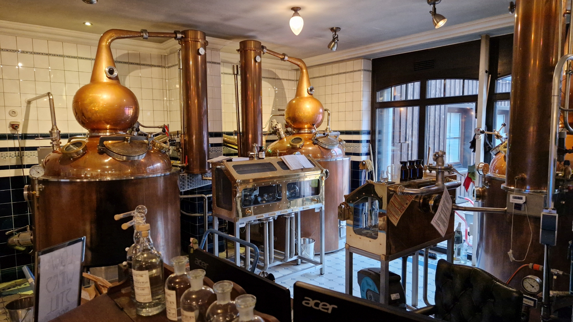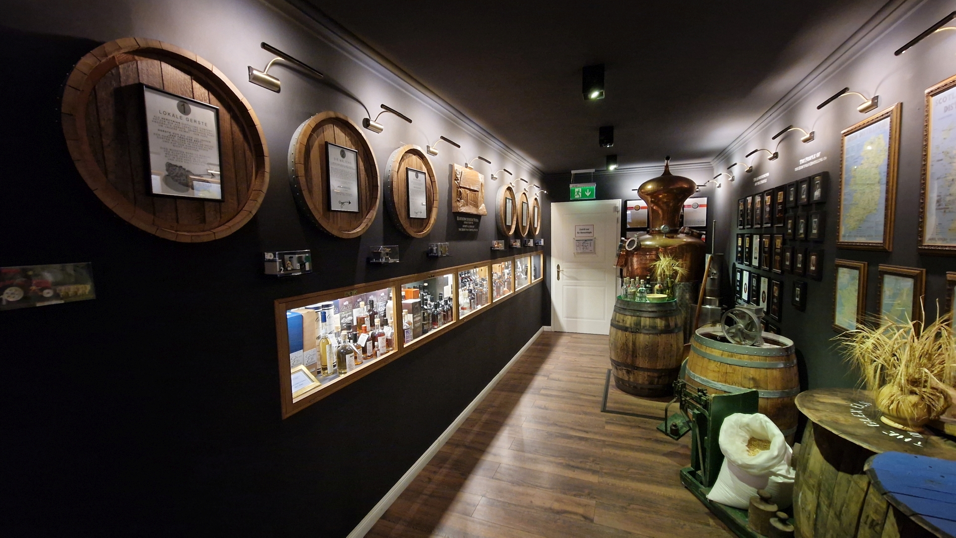 Ich war allerdings für die Standard-Führung, der sogenannten „ELSperience Tour“, vor Ort. Geleitet wurde die Tour von der Geschäftsführerin und Head of Distilling Anna Katarina Buchholz persönlich. Startpunkt für die Tour war eine Art Galerie, in welcher die Geschichte der Destillerie, Produktionsmaterialien, Mitarbeiterportraits und ein Archiv bisheriger Abfüllungen ausgestellt waren. Ein großartiges Detail waren hier auch kleine Kästen mit Klemmbaustein-Modelle, welche die verschiedenen Produktionsschritte darstellten.