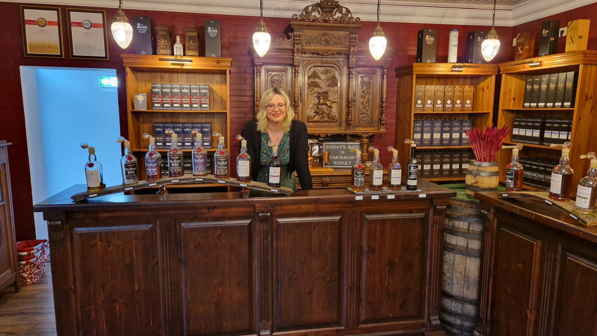 Zum Ende der Tour landeten wir wieder im Besucherzentrum, in welchem wir herzlich dazu eingeladen wurden, gerne an der Bar von den aktuellen Abfüllungen zu probieren und in den Austausch mit dem Fachpersonal zu kommen.