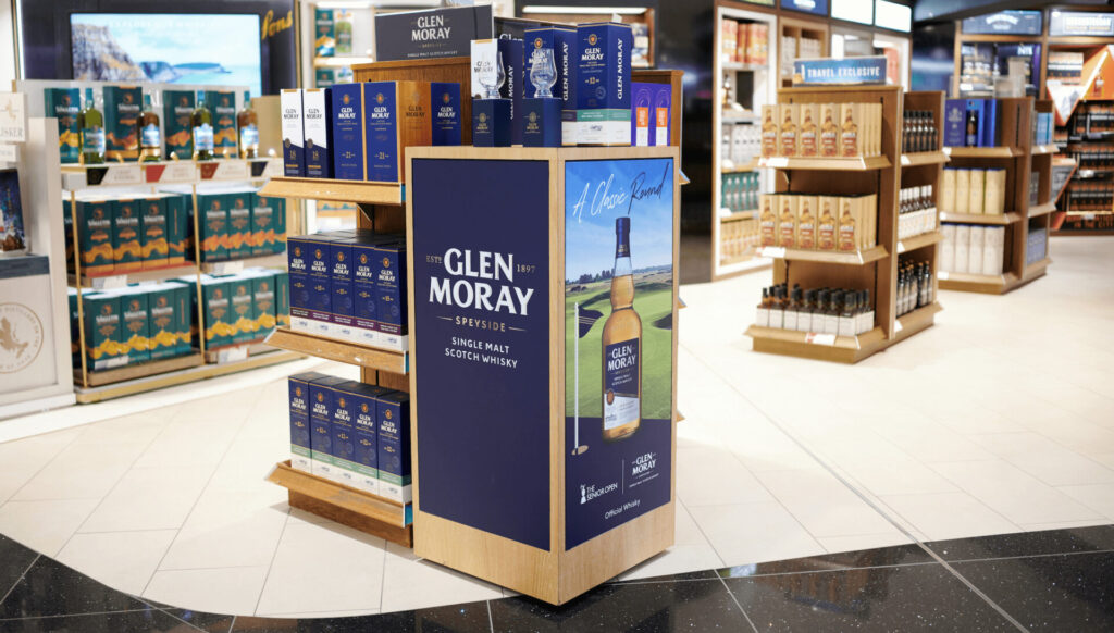 Die bisher größte Investition von Glen Moray in den britischen Reiseeinzelhandel umfasst eine Reihe digital tasting bars, Ausstellungseinheiten, Verkostungen und masterclasses, die alle die Golfkampagne „Classic Round“ der Marke präsentieren. Diese sollen den wachsenden Umsatz der travel retail range von Glen Moray unterstützen. Zu dieser gehören Glen Moray 12 Years Old, 15 Years Old und 18 Years Old sowie die Geschenkpackung „Explorer“ mit 5-cl-Probiergläsern der Classic Collection von Glen Moray (Elgin Classic, Port Cask Finish, Sherry Cask Finish und Peated Single Malt).