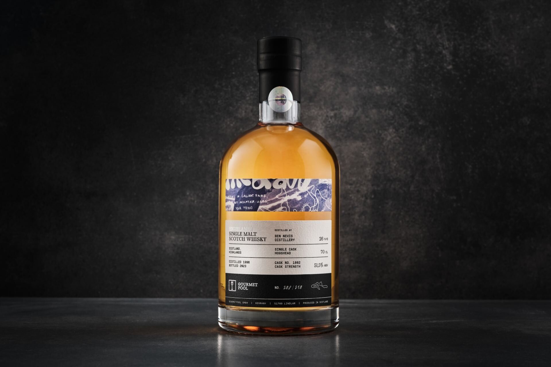 Entstanden ist aus dem Fass mit der Nummer 1882 ein 26 Jahre alter Ben Nevis Whisky mit 51,5% ABV. Der Whisky wurde im Jahr 1996 destilliert und 2023 abgefüllt. Die Anzahl der Flaschen ist auf 210 Stück limitiert.