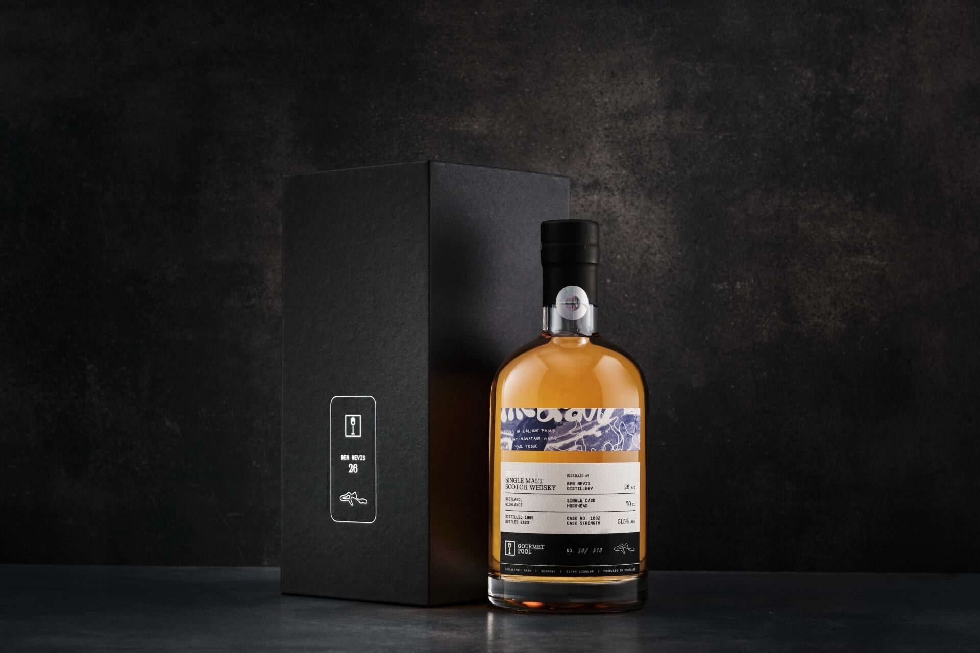 Mindestens zwanzig Jahre alt, Single Cask und besonderer Whisky, der nicht ünberall und jederzeit zu erhalten ist – das sind jene Eckpunkte, unter denen GourmetPool ihre Abfüllungen aussucht. Die neueste Veröffentlichung des unabhängigen Abfüllers ist ein 26 Jahre alter Ben Nevis aus einem Hogshead-Einzelfass, der auf 210 Flaschen limitiert ist. Er wird ab 31. Mai über ausgewählte Fachhändler und über Vermittlung durch GourmetPool Limited Spirits erhältlich sein.