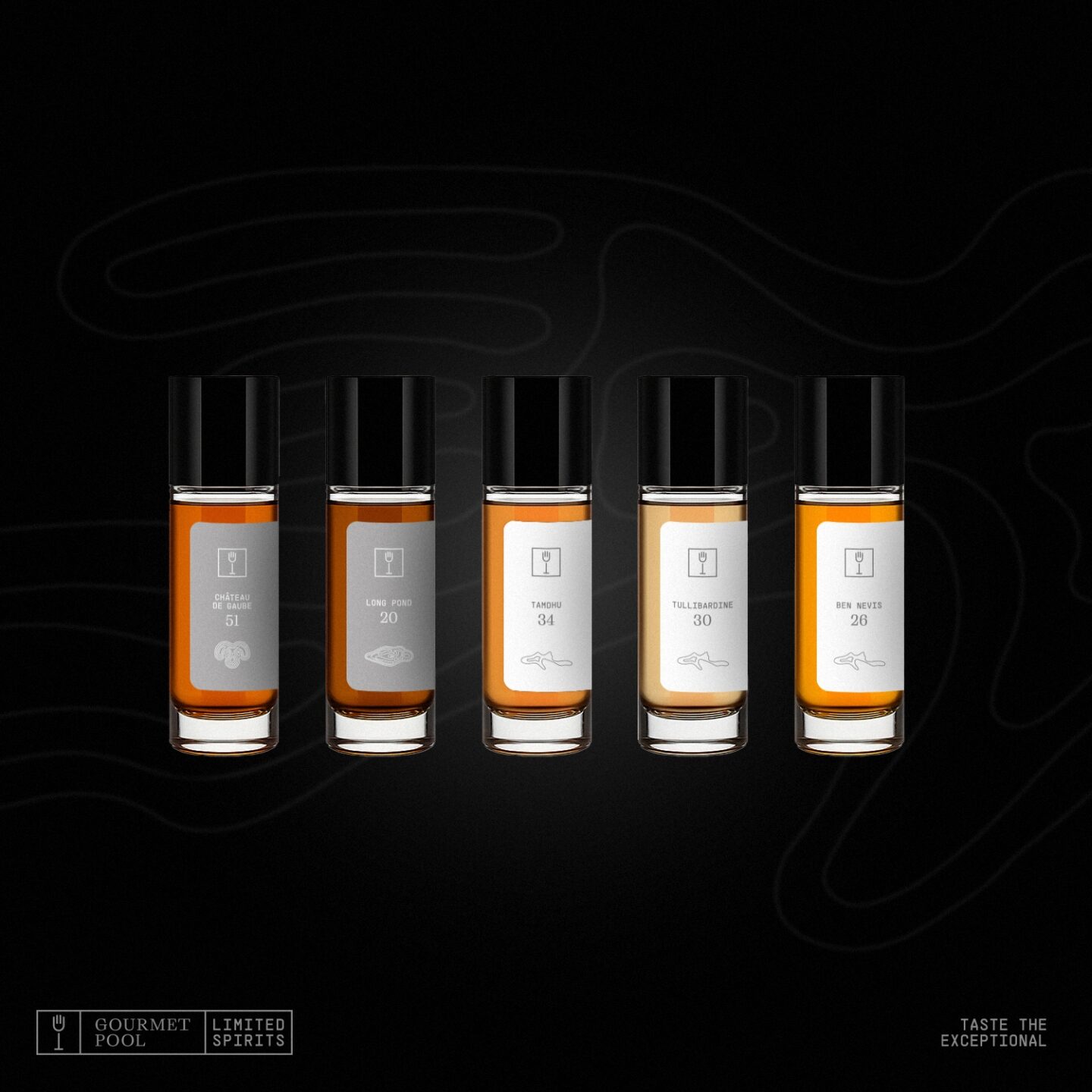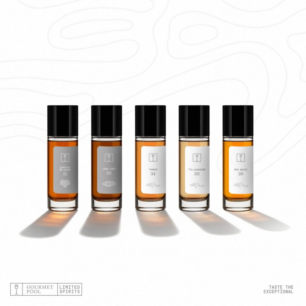 Alle fünf Proben sind bewusst so zusammengestellt, dass sie verschiedene Facetten gereifter Premium-Spirituosen aufzeigen – von kraftvoll und charakterstark über elegant bis hin zu tief, komplex und meditativer Genussreife.
