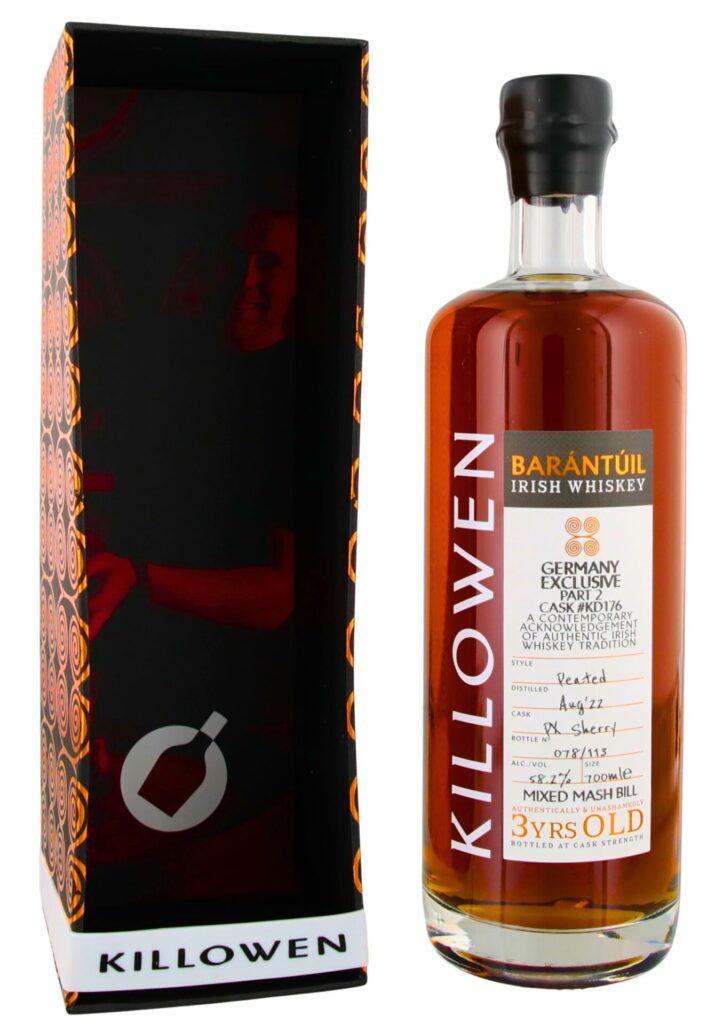 Mit der zweiten Abfüllung, die exklusiv für Deutschland erschein, geht Killowen einen Schritt weiter. Denn dieses Single Cask Projekt enthält einen großen Anteil an getorftem Malz, welches die Geschmacksknospen auf eine spannende Reise mitnimmt.