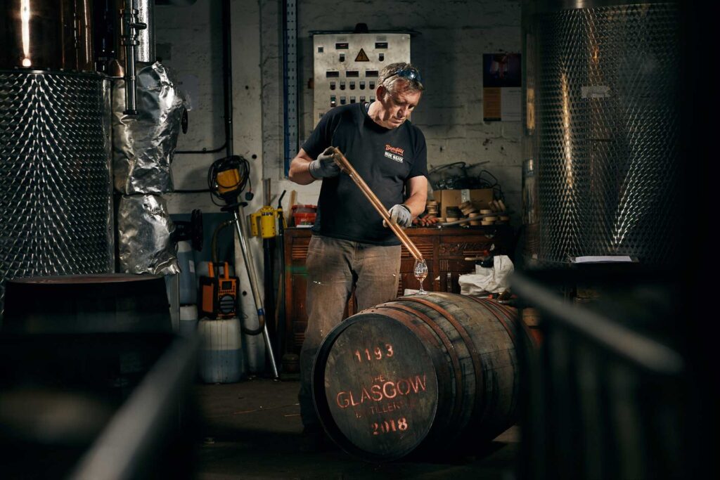 Zudem ist die Glasgow Distillery einer der wenigen Whiskyproduzenten in Schottland, die einen eigenen Vollzeit-Küfer vor Ort beschäftigen. Hugh McMurray ist der Master of Wood der urbanen Brennerei. Er überwacht das Reifungsprogramm, die Fasspflege und die Lagerung.
