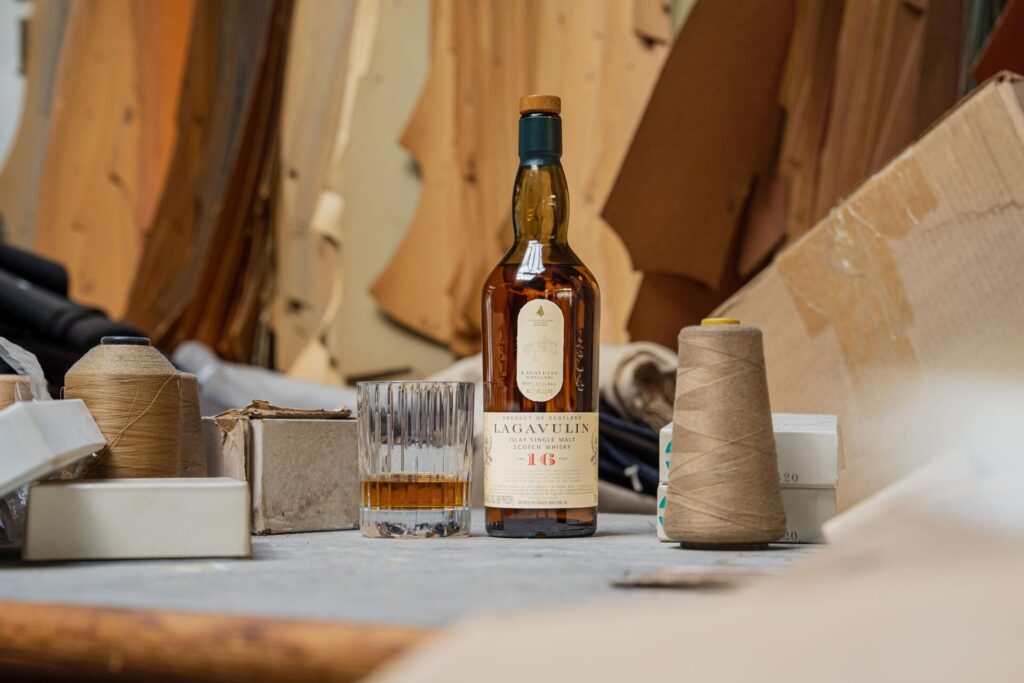 The first iteration of the tartan is being woven in the looms of Lovat Mill, Scotland’s legendary textile house based in Hawick, the historic heart of tartan weaving. For centuries, Lovat has been regarded as a custodian of Scotland’s national fabric, producing cloth for royalty, design houses, and institutions around the world. Like Lagavulin, its reputation rests on patience, precision, and a commitment to preserving tradition while embracing modern interpretation, making it a natural partner for this collaboration.