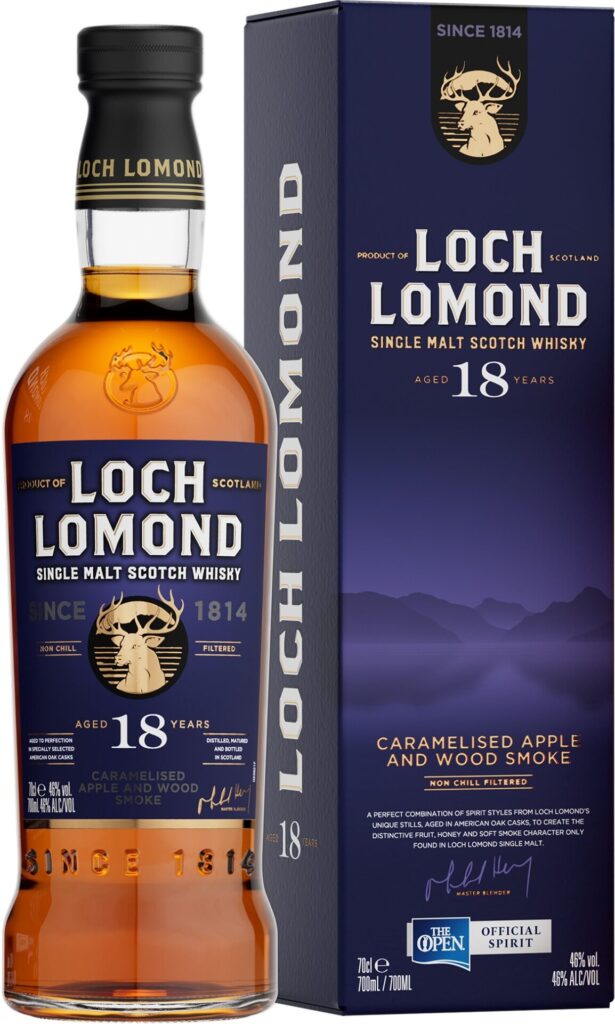 Der Loch Lomond 18 Jahre spiegelt den einzigartigen Loch Lomond Signature Stil von fruit, honey & soft smoke wider und präsentiert Noten von gebackenen Äpfeln, reichhaltigem Toffee und rauchigen Holznoten. Destilliert wurde der Single Malt in den einzigartigen Straight Neck Pot Stills und den traditionellen Swan Neck Stills und reifte anschließend in 100% American Oak Casks – Bourbon, Refill and Re-charred – die alle von der hauseigenen Küferei gepflegt werden und den einzigartigen Geschmack der innovativsten Brennerei Schottlands einfangen.
