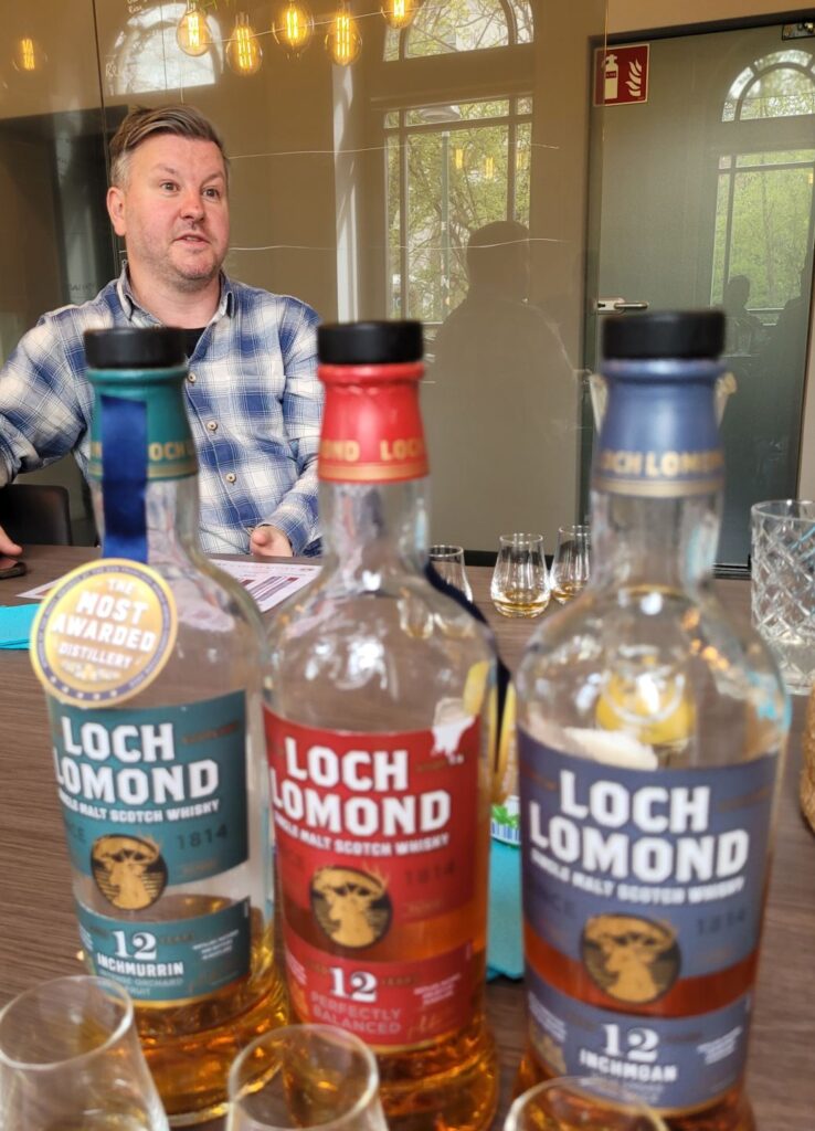Natrülich hat Loch Lomond eine große Auswahl an Malts, Alan demonstrierte an drei Abfüllungen die Unterschiedlichkeit, die fast ausschließlich auf die Zusammenstellung der New Makes zurückzuführen ist. Alle verkosteten Malts haben 46% vol. und sind 12 Jahre in refill Bourbon caks gelagert.