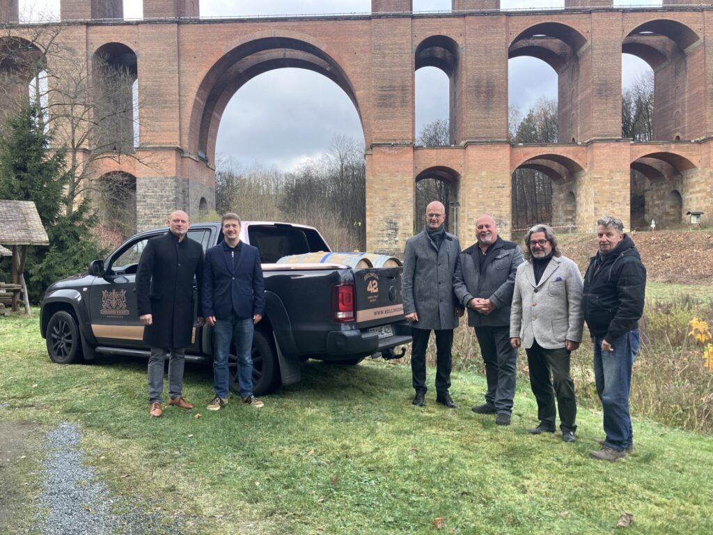 Eigentlich war es nur eine Schnaps-Idee, die Netzschkaus Bürgermeister Mike Purfürst und Thomas Michalski, Blend Master der Dresdner Whisky Manufaktur hatten. Beide trafen sich im Mai mehr zufällig auf der Eröffnung der vom Dresdner Verleger Roland Hess organisierten Veranstaltung „Sachsen in Paris“ im Carrousel du Louvre – der eine, um die Göltzschtalbrücke zu präsentieren, der andere, um den Dresdner Whisky HELLINGER 42 bekannter zu machen. Und die Idee? Zwei 225-Liter-Fässer der Dresdner Whisky Manufaktur, die mit dem einzigartigen Single Malt Whisky HELLINGER 42 gefüllt werden, sollten in die Göltzschtalbrücke, die größte Ziegelsteinbrücke der Welt, eingebracht werden.