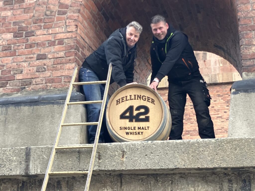 „Wir konnten zwei Wein-Fässer des sächsischen Winzers Jan Ulrich für den Göltzschtalbrücken-Whisky organisieren und mit unserem HELLINGER 42 befüllen, die jetzt in besagter Brücke reifen. An der Vorbereitung und an der Einbringung in die Brücke hatten wir alle unseren Spaß. Im Gegensatz zu gleichbleibenden Temperaturen im Basalt-Keller haben wir hier schwerere Bedingungen mit wechselnden Temperaturen im Brückeninnern.“