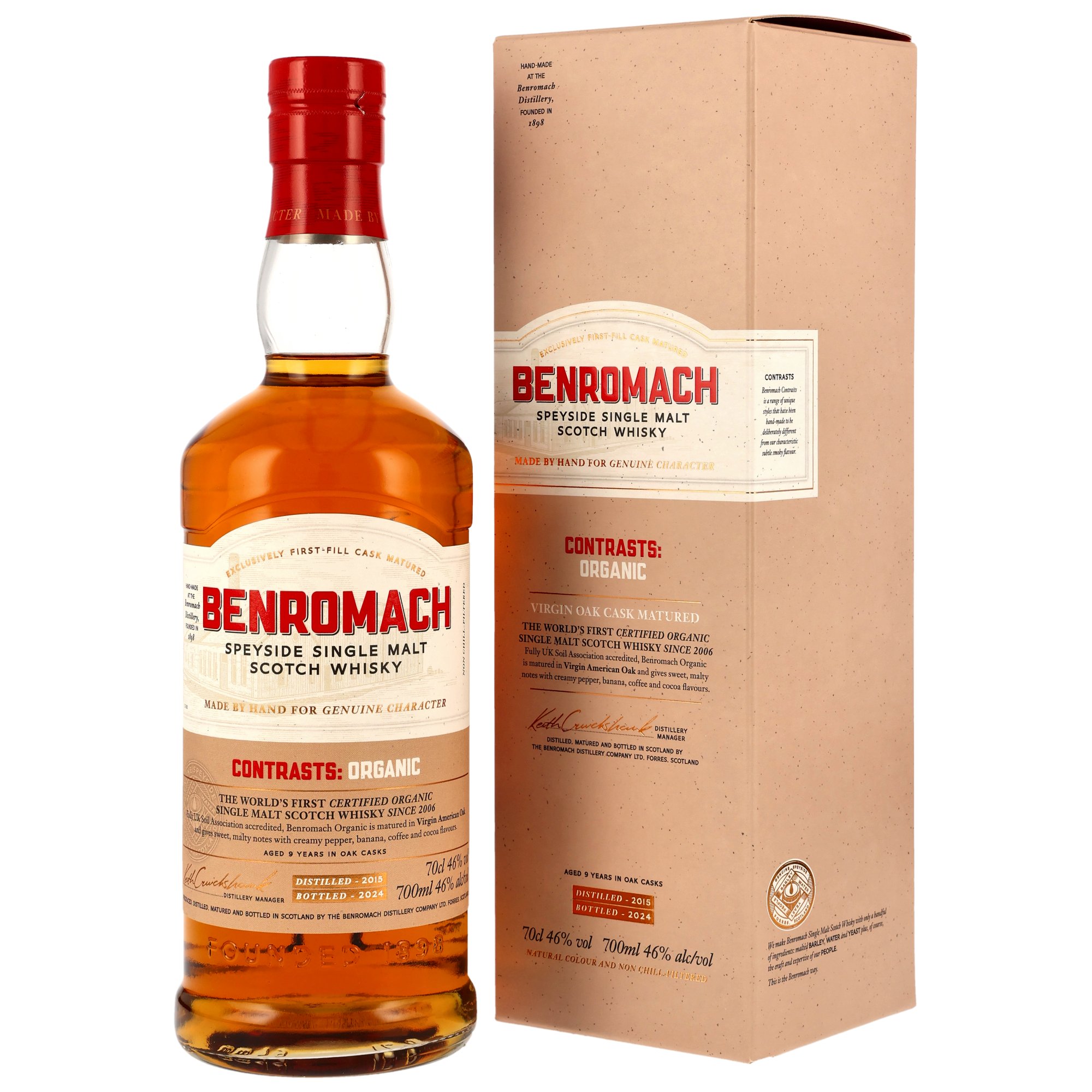 Ausnahmen bestätigen aber auch bei Benromach die Regel – insbesondere in der experimentellen Contrasts-Reihe. So wird der Benromach Contrasts: Organic etwa aus ungetorftem Bio-Gerstenmalz gebrannt und reift in Virgin Oak Casks. Der erste je biozertifizierte Single Malt Scotch ist ein süßes, zugängliches Erlebnis mit Noten von Vanille, Toast, Banane, Milchschokolade und Gewürzen. Nach neun Jahren im Fass ist nun das neue Batch da.
