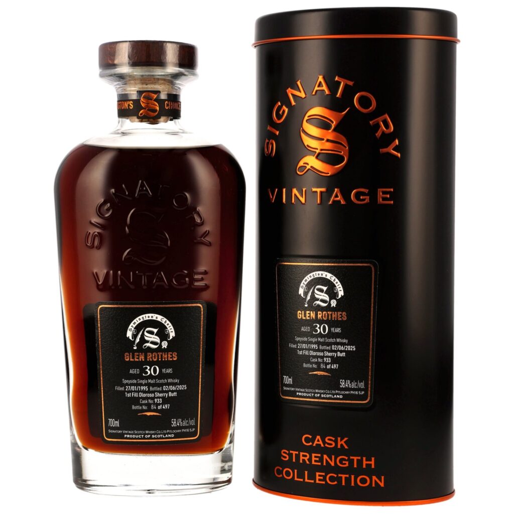 Mit dabei: eine von Jim Murrays „Top Five“ Brennereien. Single Malts von Glentauchers sind selten, denn der Speyside-Whisky ist eine Kernzutat des Ballantine’s Blends. Signatory ließ den Glentauchers 2009/2025 ganze 16 Jahre in First Fill Oloroso Sherry Butts ruhen und ergänzte den leichten, floralen Brennereicharakter so um Waldbeeren, Rosinen und Zimtmandeln.