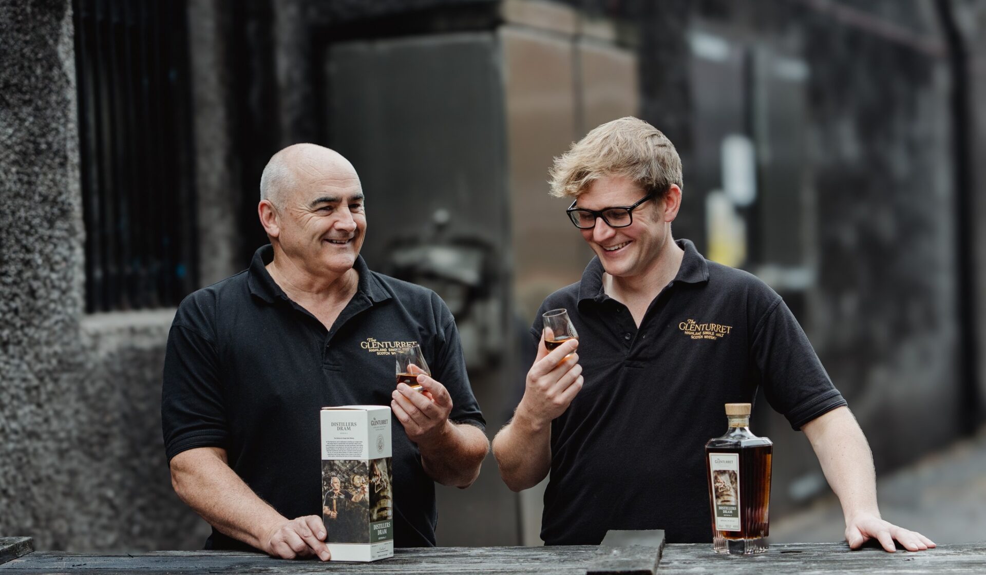 Mit der Distillers Dram Edition No.2 zollt Glenturret den Menschen Tribut, die den Whisky prägen. Die limitierte Komposition feiert zwei prägende Köpfe der Brennerei:Kenny Smith und Robert Paterson, deren insgesamt 30-jährige Hingabe den gesamten Prozess der Whiskyherstellung umfasst. Vier Sherry Seasoned Casks bilden die Basis für einen Whisky mit Tiefe und Harmonie, der Trockenfrüchte und Toffee-Apfel, Orangenschale, dunklen Sirup, süße Gewürze und sanften Holzrauch zusammenbringt.