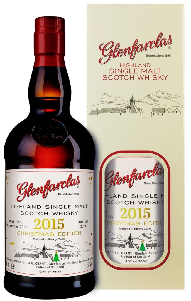 Mit der Christmas Edition präsentiert Glenfarclas regelmäßig Jahrgänge, die zur Weihnachtszeit destilliert wurden. Diese Abfüllung wurde im Dezember des Jahres 2015 destilliert und reifte anschließend in den traditionellen Dunnage Warehouses der Brennerei. Die exklusive und streng limitierte Edition vereint komplexe Sherry-Aromen, Demerara-Süße, weihnachtliche Aromen und wurde in kraftvoller Trinkstärke mit 50,0 % Vol. abgefüllt. Der Single Malt kommt selbstverständlich ohne Farbstoff und ohne Kältefiltrierung und ist auf 3.600 Flaschen limitiert.