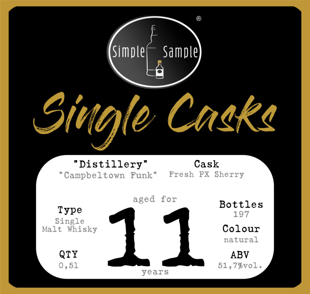 „Campbeltown Funk“ – 11 Jahre – Fresh PX Sherry Cask – Simple Sample Single Casks – 0,5L Großflasche inkl. 2cl Sample von Simple Sample