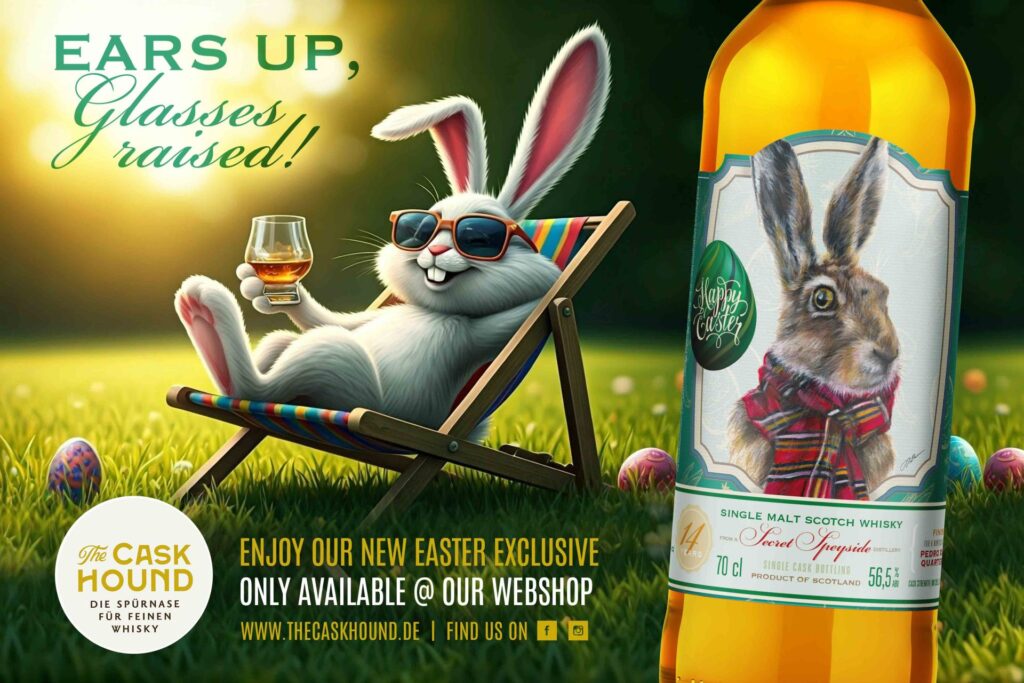 Ein Whisky, der sich nicht verkleidet, sondern seinen Stil lebt: eigenständig, ausdrucksstark, ein bisschen verrückt – ein Festtags-Dram, wie ihn sich selbst der entspannteste Osterhase nicht besser hätte einschenken können. Und weil echte Schätze nicht ewig liegen bleiben: Ab Ostersonntag 2025 sind exakt 158 Flaschen dieses Tropfens exklusiv im Webshop von THE CASKHOUND erhältlich. Sobald also Meister Lampe aus dem Bau hüpft, heißt’s: ab in den Shop und sich den flüssigen Schmackofatz sichern!