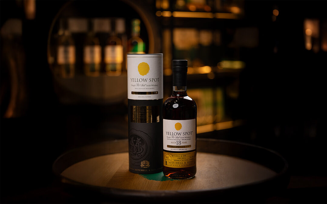 In Zusammenarbeit mit dem familiengeführten Wein- und Spirituosenhändler Mitchell & Son präsentiert Irish Dsitillers die neue Abfüllung Yellow Spot 18 Year Old Single Cask. Der dreifach im Jahr 2006 destillierte Pot Still Irish Whiskey reifte zunächst in einer Kombination aus Bourbon- und Oloroso-Sherryfässern. Nach seiner Vermählung genoss der Irish Whiskey ein Finish in einem first-fill Málaga Wine Cask. Abgefüllt mit 58 % Vol. in Fassstärke, konnten aus diesem Cask No – 41189 insgesamt 600 einzeln nummerierte Flaschen abgefüllt werden.