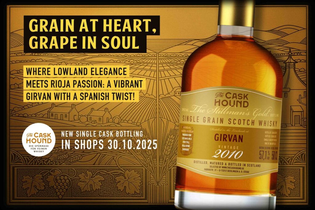 Der Goldene Oktober ist bei THE CASKHOUND noch lange nicht vorbei – im Gegenteil. Nach drei spannenden Abfüllungen zum Monatsauftakt legt Tilo Schnabel nun einen drauf: den 15-jährigen GIRVAN Single Grain Whisky. Der charakterstarke Lowlander führt die THE STILLMAN’S GOLD-Serie fort – und zeigt einmal mehr, dass bei Tilo noch einige spannende Tropfen auf ihren großen Auftritt warten …
