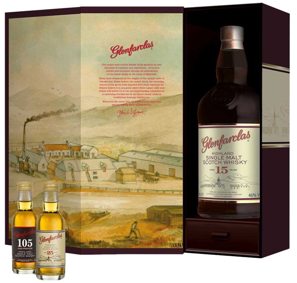 Neu: Glenfarclas Gift-Pack 15 Jahre + Glenfarclas 105 Miniatur & Glenfarclas 25 Jahre Miniatur