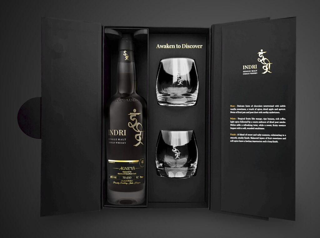 Ab sofort verfügbar ist der Indri Agneya in einer attraktiven Geschenkverpackung inklusive zwei Gläsern.
