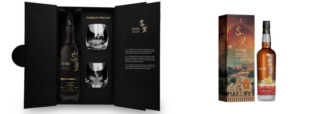 Neues von Indri Single Malt: Indri Diwali Collector’s Edition 2025 und Indri Agneya mit Geschenkverpackung und zwei Gläsern