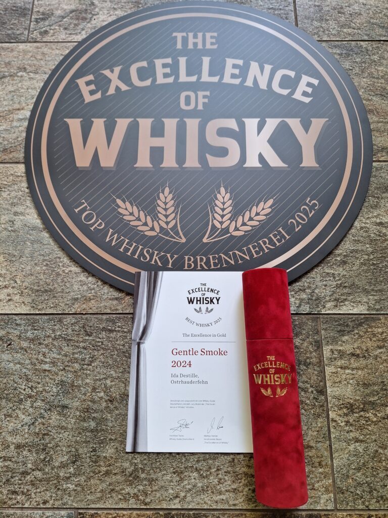 Nachdem die Ida-Destille in Idafehn, Ostfriesland verdient den Preis als „Top Whisky Brennerei 2025“ bei den The Excellence of Whisky erhalten hat, folgte auch für die Abfüllung des „Gentle Smoke“ die offizielle Goldmedaille. Als einzige aktiv produzierende Brennerei Ostfrieslands kann sie zurecht Stolz auf diese Auszeichnungen sein, da sie auch erst am 12.07.2023 die ersten Abfüllungen vorstellen durfte.