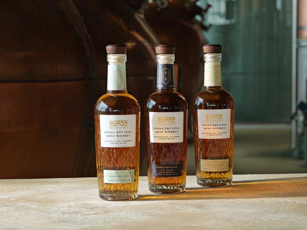 Ausgestattet mit Pot-Stills und Column-Stills sowie einer eigenen Quelle und regionaler Gerste entstehen hier preisgekrönte Whiskeys mit klarer Handschrift. Boann verbindet handwerkliche Exzellenz mit Innovationsfreude und einem bewussten Fokus auf Nachhaltigkeit. Besonders hervorzuheben: Die Distillery legt Wert auf traditionelle Pot Still-Rezepturen mit einem hohen Anteil an ungemälzter Gerste und kleinen Anteilen anderer Getreidesorten, die für den typisch cremigen und würzigen Körper sorgen. Neben Whiskey werden auch Gin, Apfelwein und weitere Craft-Spirituosen im eigenen Haus produziert.