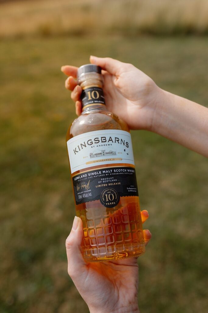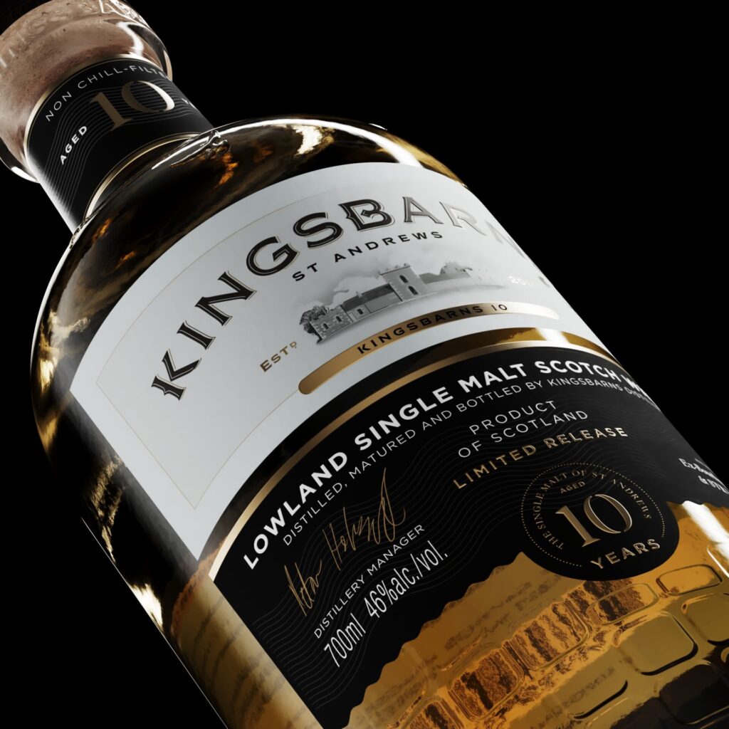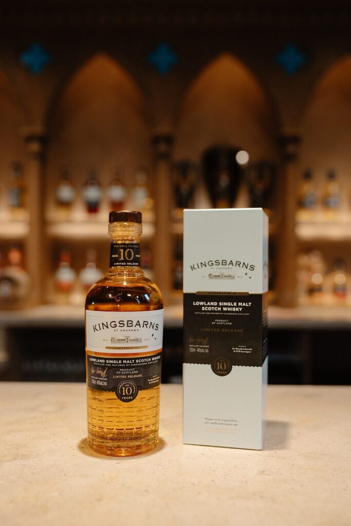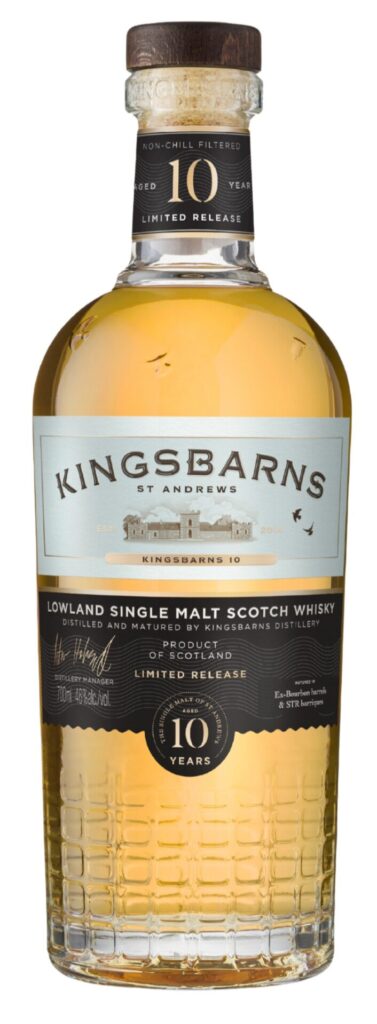Der Kingsbarns 10 Years Old ist ein leichter, fruchtiger Whisky und wird aus lokaler Laureate-Gerste destilliert. Er reift zu 90 % in ehemaligen Bourbon-Fässern und zu 10 % in STR-Rotwein-Barriques.