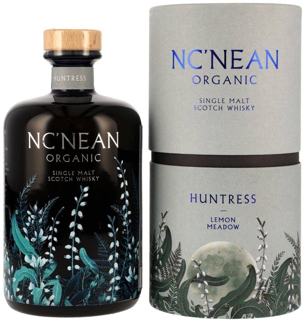 Nc’nean Huntress 2025: Lemon Meadow, Organic Highland Single Malt Scotch Whisky (48,5% vol., 0,7 Liter): innovativer Whiskygenuss aus einer Rezeptur mit Champagnerhefe; gereift in 56% STR Red Wine Casks, 42% Bourbon Casks und 2% Oloroso Sherry Casks; cremiges, leichtes Profil aus Zitronensorbet, Kamille und Buttergebäck; limitiert auf 5.729 Flaschen; biozertifiziert und weder gefärbt noch kühlfiltriert