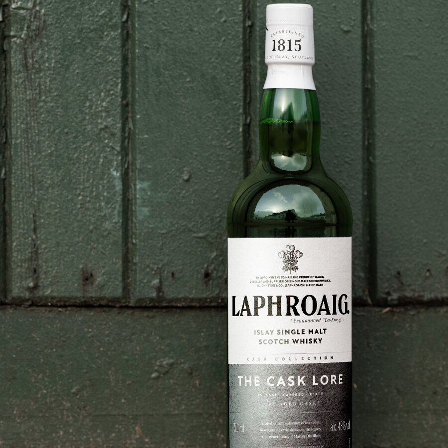 Laphroaig (gälisch für „schöne Senke an der weiten Bucht“) zählt zu den traditionsreichsten Whisky-Marken. Die 1815 auf der schottischen Insel Islay („eye-la“) gegründete Destillerie feiert bis heute ihr jahrhundertealtes Erbe. Hier wird ein Teil des Gerstenmalzes in der Brennerei selbst über Torffeuer getrocknet, was diesem Whisky sein außergewöhnlich reiches, intensiv torfiges Aroma verleiht. Das besondere Torfmoor der Insel mit seinem reichen Anteil an Torfmoos sowie das milde Klima, die erstklassige Gerste und das weiche Wasser Islays tragen in Verbindung mit dem Wissen der Master Distiller zum einmaligen Geschmack des Laphroaig Single Malt bei. 1994 wurde Laphroaig zum Hoflieferanten des englischen Königshauses ernannt, seither ziert das königliche Wappen jedes Laphroaig-Etikett.