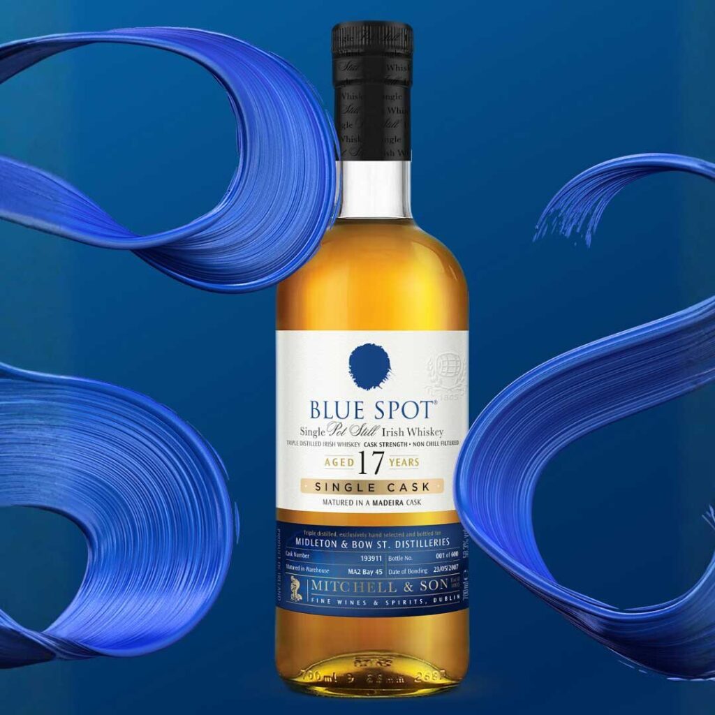 Nach ihrem Yellow Spot 18 Year Old Single Cask veröffentlichen Irish Distillers nun die Abfüllung Blue Spot 17 Year Old Single Cask. Der Pot Still Irish Whiskey, dreifach destilliert, reifte zunächst in ex bourbon barrels, um dann 2011 in first fill Madeira casks umgefüllt zu werden. Blue Spot 17 Year Old Single Cask stammt aus einem einzigen Fass und ist in Fassstärke von 58,3 % Vol. abgefüllt. Diese 600 Flaschen sind exklusiv den Destillerien in Midleton, County Cork, und Bow St., Dublin, sowie online in der Midleton Distillery Collection für 441 € erhältlich.