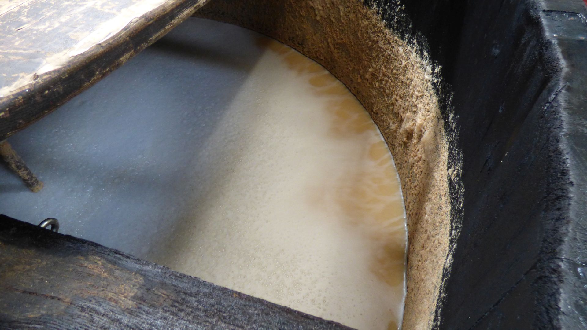Das Wasser, das im Mash Tun verwendet wird, ist nun nach Reinigung auch fĂĽr Energieerzeugung nutzbar. Bild: Blick in den Mash Tun der Speyside Distillery. Von Jochen Wied, Joe’s Tastings