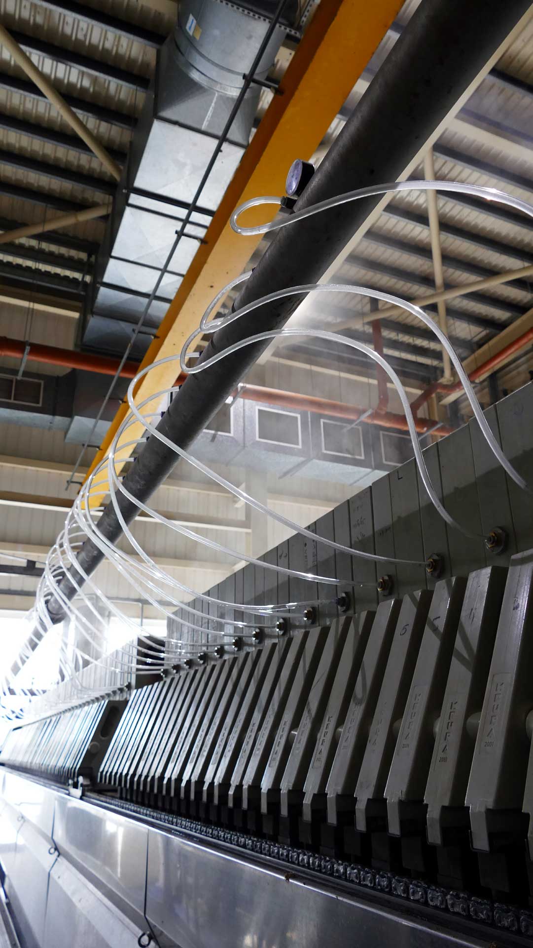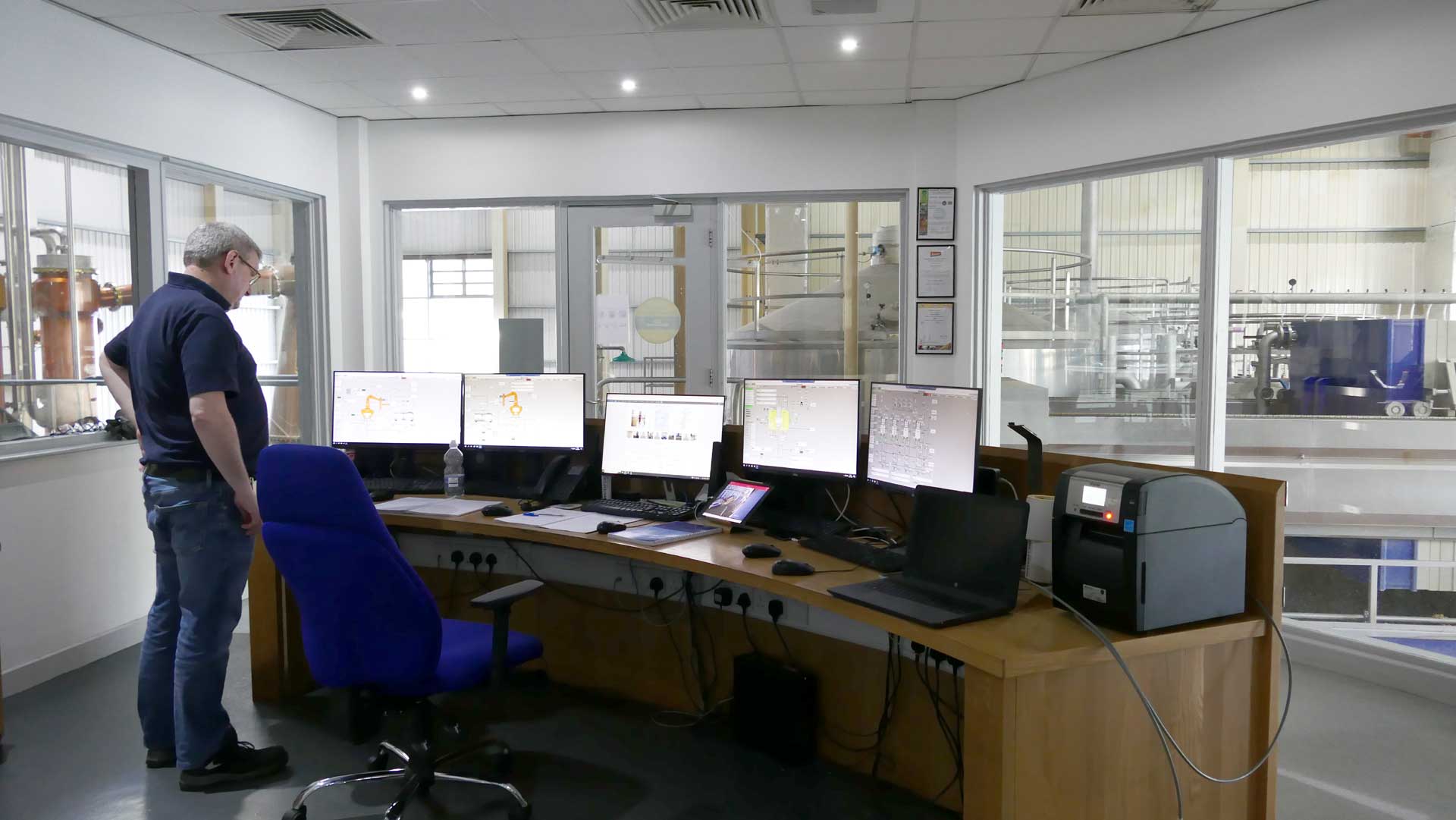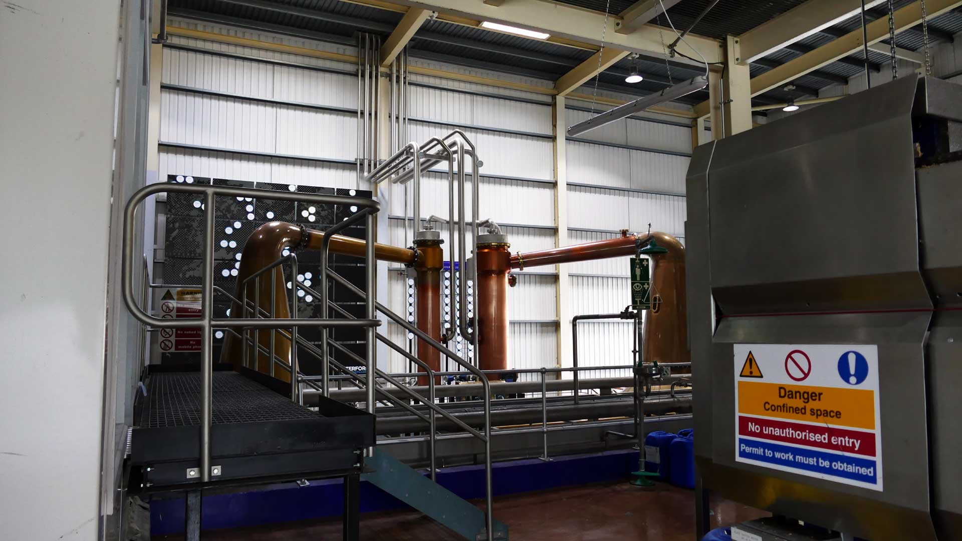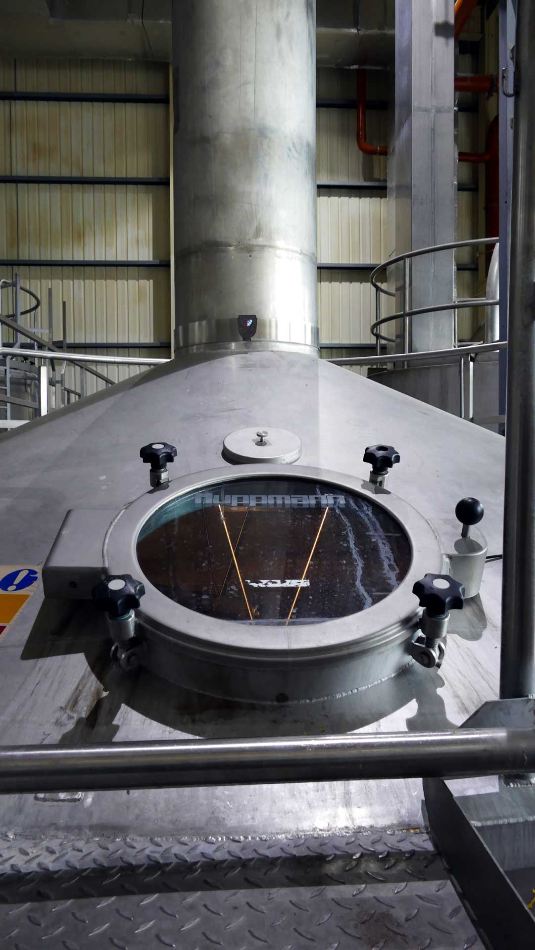 Bei unserer ersten Station treffen wir auf eine alte Bekannte: eine der Inverleven Stills, die vor Bruichladdich standen und aus der noch heute jeder bislang veröffentlichte Whisky von Waterford stammt. Dann geht es weiter zu den neuen Stills, bevor wir uns die besondere Hydromill, den Mash Filter (ein sehr ausgefallener, aber kluger Ersatz für einen Mashtun) und danach die Fermentationstanks ansehen.