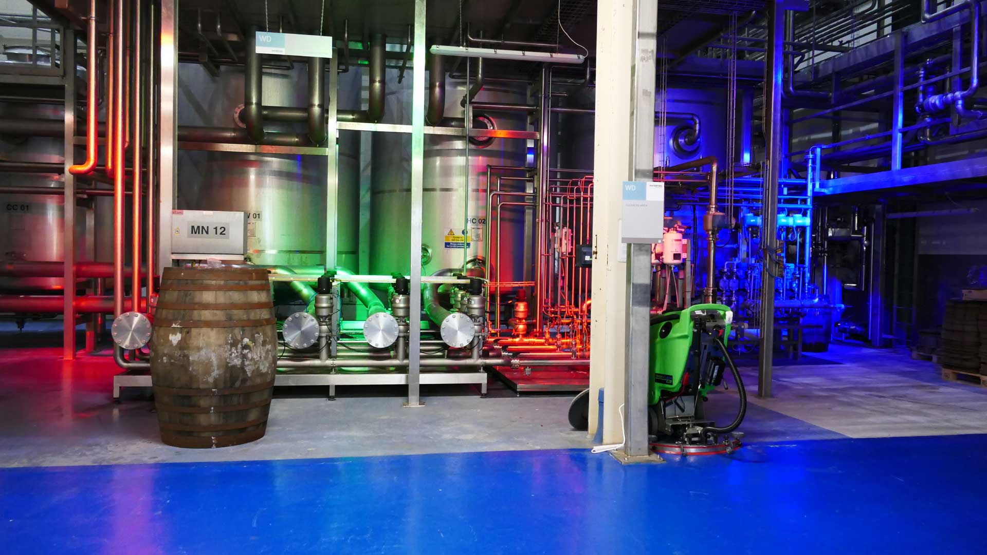 A: Kältefiltrierung und Farbstoff B: Fässer und Brennblasen