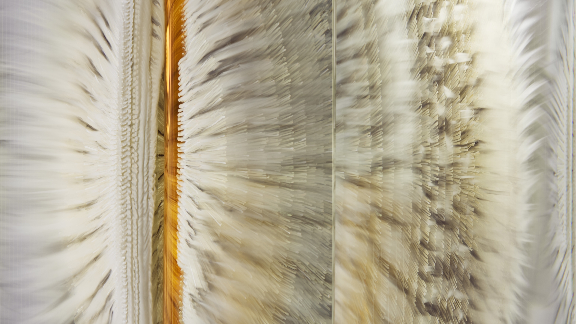 “Creating this piece representing the character of Port Ellen’s 46-Year-Old whisky in my signature style was a privilege. With delicate brush strokes I paint or draw on single panes that, layered, trimmed and polished, seemingly float in the glass creating three dimensional shapes, visualising the smoke within and exploring its depth of flavour.”