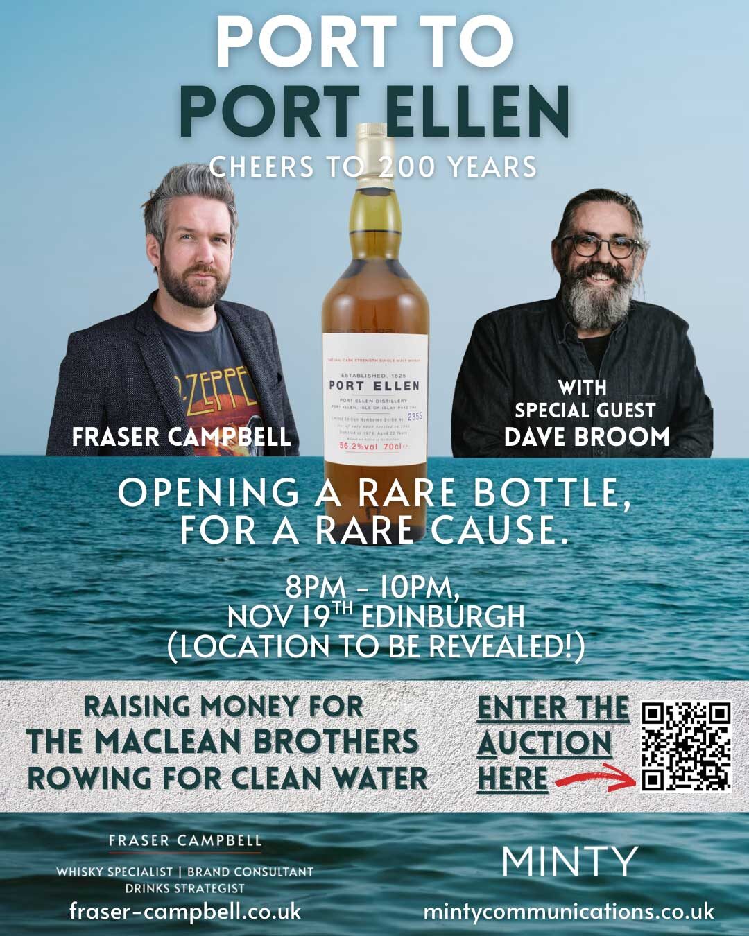 Edinburgh, September 2025; Whisky enthusiasts are being offered the chance to attend a once-in-a-lifetime tasting to celebrate the 200th anniversary of the iconic Port Ellen distillery, while raising donations for the MacLean Brothers – Rowing for Clean Water.